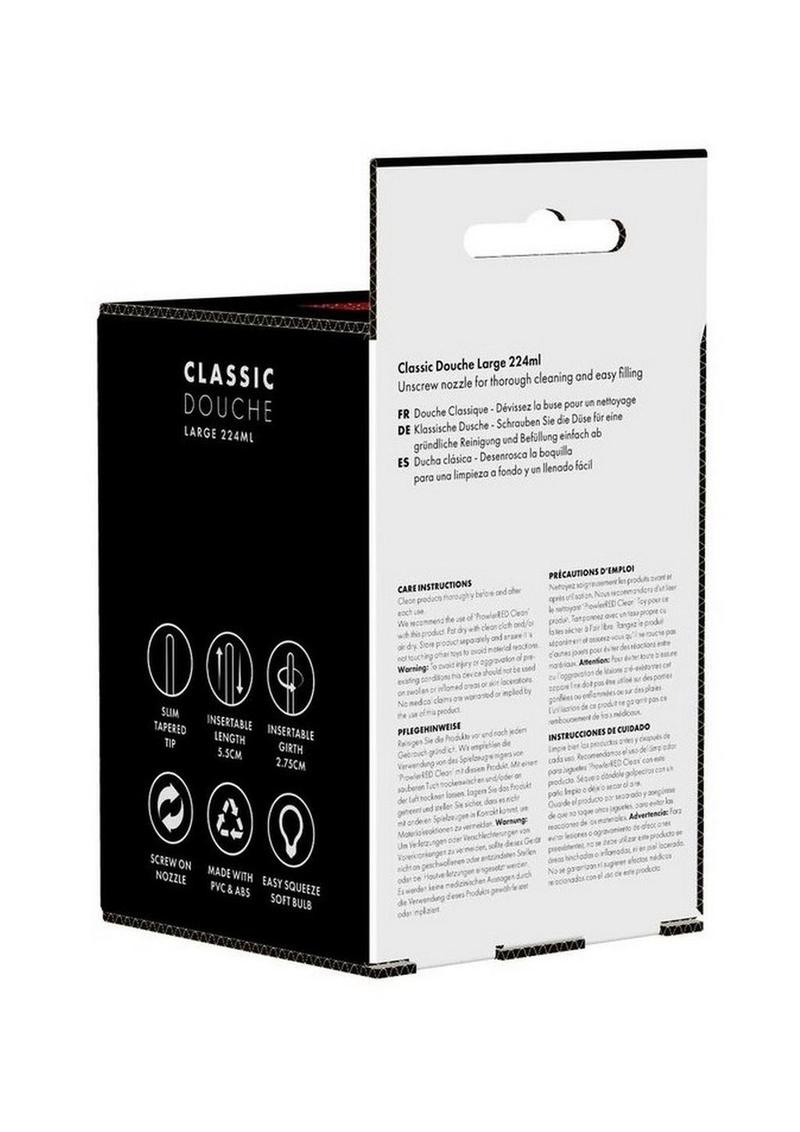 xProwler Bulb Douche is a classic douche. Featuring a PVC bulb and ABS plastic nozzle which can be cleaned easily and is simple to fill up and use. The base of the bulb is flat to enable standing it upright when needed. To fill, simply remove nozzle and hold under running water. Available in small, medium and large sizes in black.