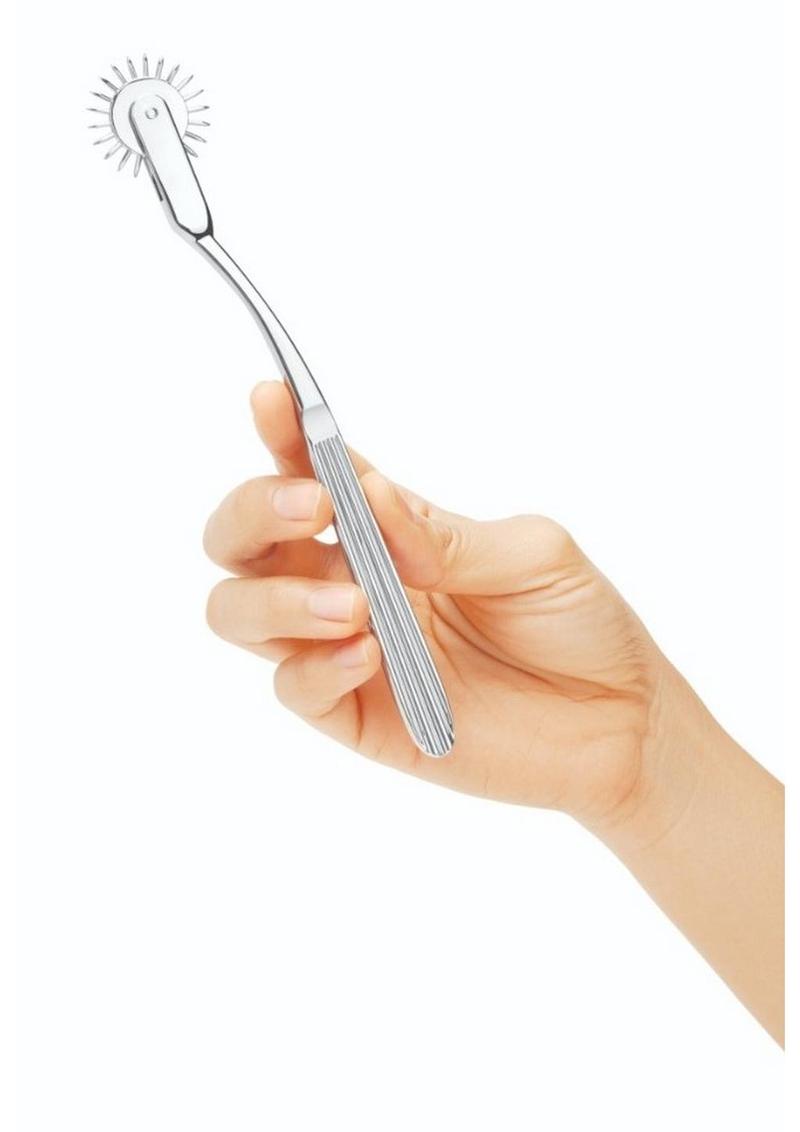 xMade of hypoallergenic zinc alloy, its silver finish adds a sleek touch to the exciting sensation it provides. Known for its stimulating touch, this pinwheel intensifies sensations for those seeking a unique adventure. The easy-to-grip handle ensures precise control as you explore the tantalizing prickling feel on the skin. The cool, smooth surface of the zinc alloy creates a sensual contrast against the skin, enhancing every tickle of its pointy tips. Its single reel design provides concentrated sensation, making it ideal for pinpoint exploration. Take your intimate moments into uncharted territories of pleasure with this must-have tool for sensual exploration.