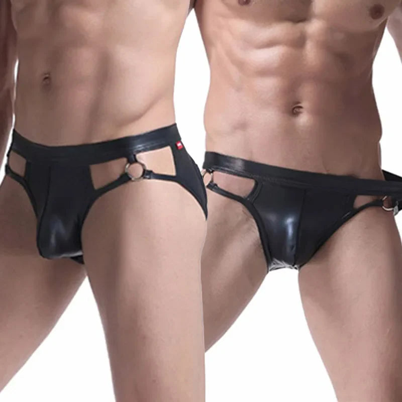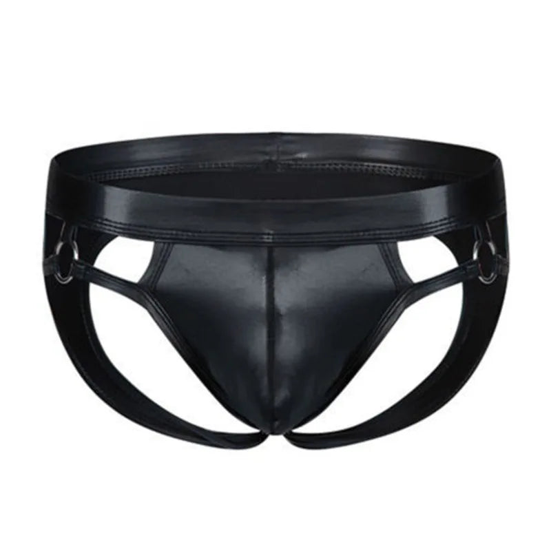 - Vegan leather jockstrap with metal details and seductive cutouts