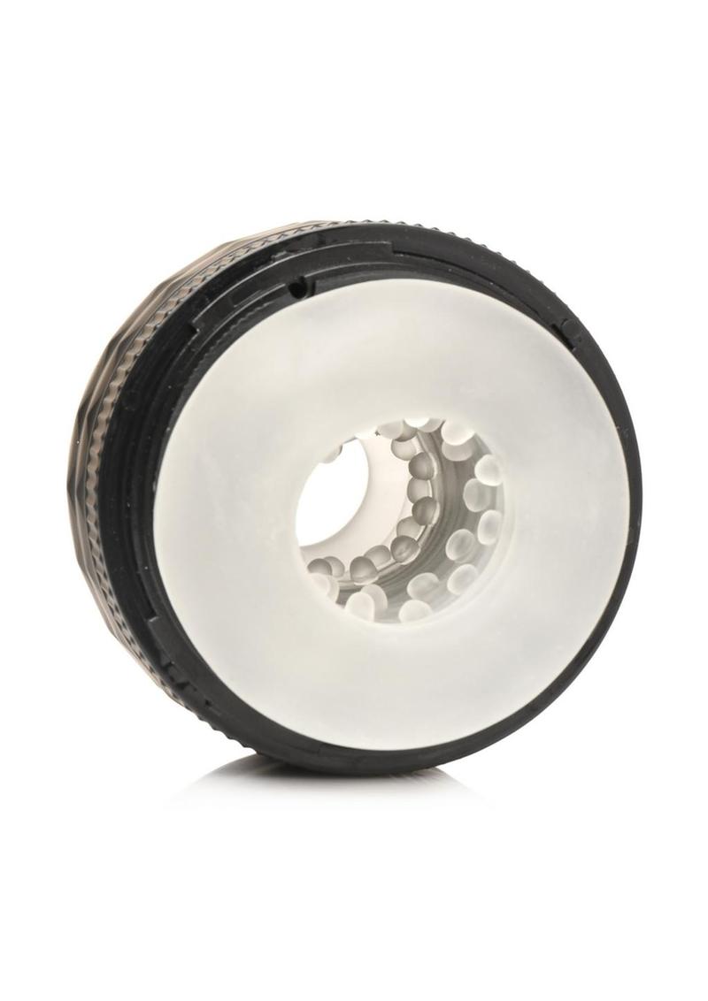 xCustomize your fit with this tightening masturbator! This stretchy, soft, TPE tunnel sits inside of a plastic case and can be adjusted to get smaller or larger for your shaft size and preference. Choose between 8 different tightness settings by turning the ring around the case to larger or smaller. Inside the tunnel are textured nubs that add to the sensation! Enjoy using it with the cap on one side or take it off for a cum-thru tip! Clean it up by rinsing it out and using mild soap and warm water, then letting it air-dry. Put both caps back on to keep dust and debris out. The case also provides a good grip so you can hold on easily as you stroke yourself with lots of lube! Only use water-based or silicone lubricants for best results.