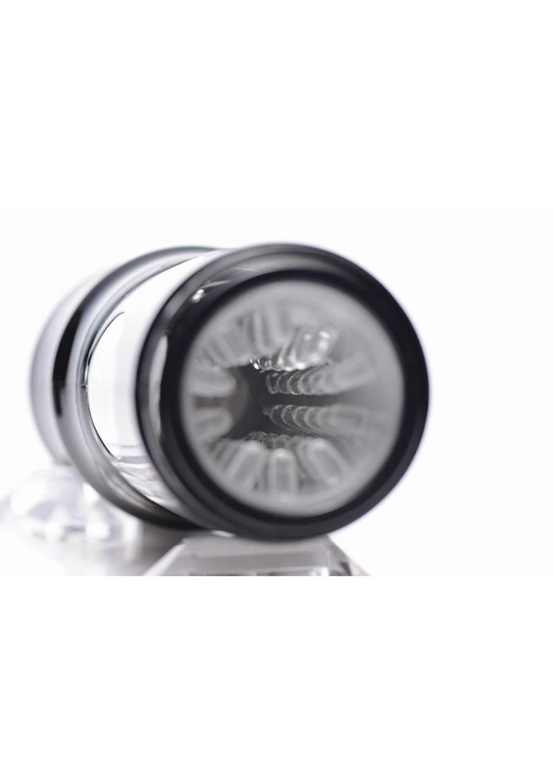 xBeat off in the ultimate swirling sensations of a revolutionary rechargeable stroker! Indulge in 8 different rhythmic speeds of vibration and rotation! Your cock has never felt anything like the soft, textured interior of this male masturbation device. Turn off the lights and feel the intense, revolving shaft massage while the lights change color on this unique mens toy! The removable cap makes this orgasmic stroker easy to store and perfect for travel. Just charge it up via the USB charger and shove your cock in for a one-of-a-kind experience of spiraling pleasure!