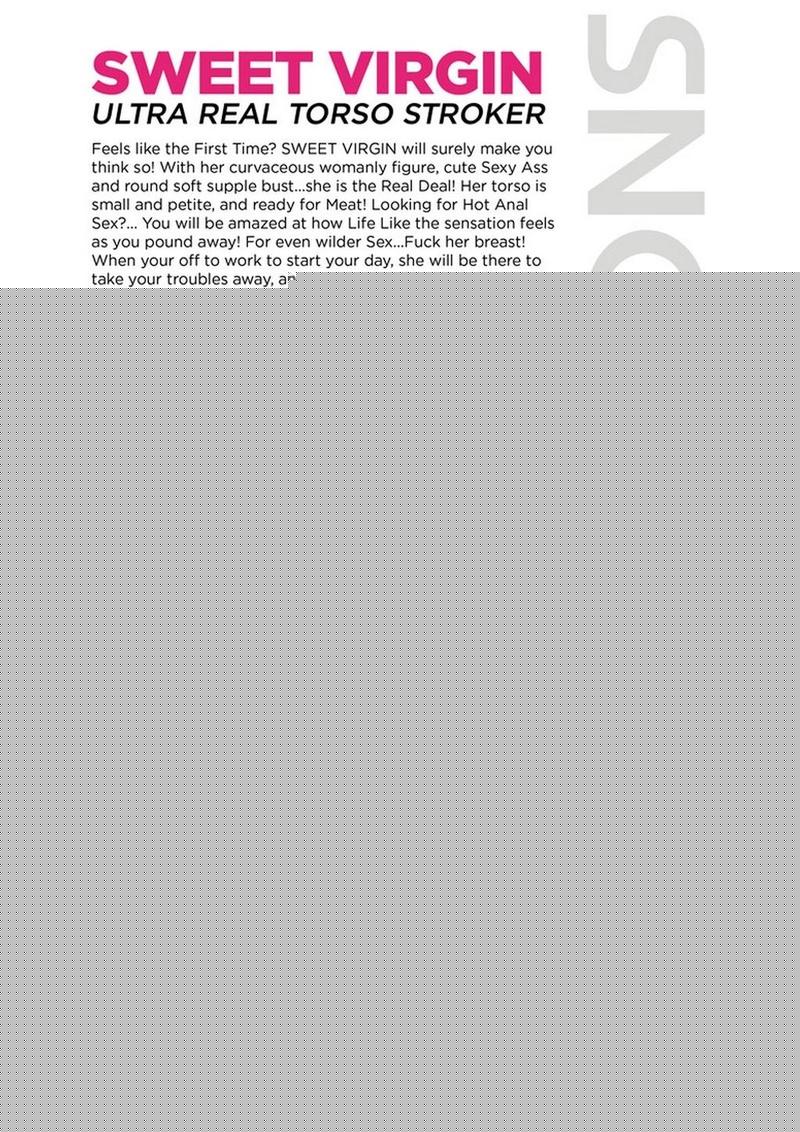 xFeels like the First Time? SWEET VIRGIN will surely make you think so! With her curvaceous womanly figure, cute Sexy Ass and round soft supple bust...she is the Real Deal! Her torso is small and petite, and ready for Meat! Looking for Hot Anal Sex?... You will be amazed at how Life Like the sensation feels as you pound away! For even wilder Sex...Fuck her breast! When you are off to work to start your day, she will be there to take your troubles away, and when you come home stressed and you are ready for more… she will be warm & waiting as you walk through the door.