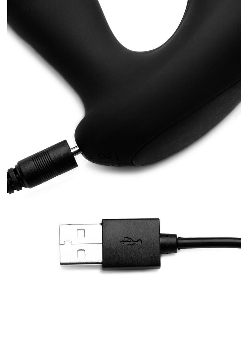 Savor every swell in your hole, but imagine the sensation when one of them starts to caress your prostate! The 7x P-Milker can be used with or without the remote control to cycle through 7 vibration settings that pulse and throb inside your hole. Meanwhile, a bead beneath the surface of the tip will move up and down, milking your sweet spot. The exterior portion has its own motor, as well, and will put textured pressure on your perineum, vibing you from the outside. Made of silky-smooth silicone, you can enjoy a seamless insertion. This premium, rechargeable pleasure tool is waterproof, non-porous, and phthalate-free. Avoid use with silicone lubricants. Clean after use with mild soap or toy cleaner.
