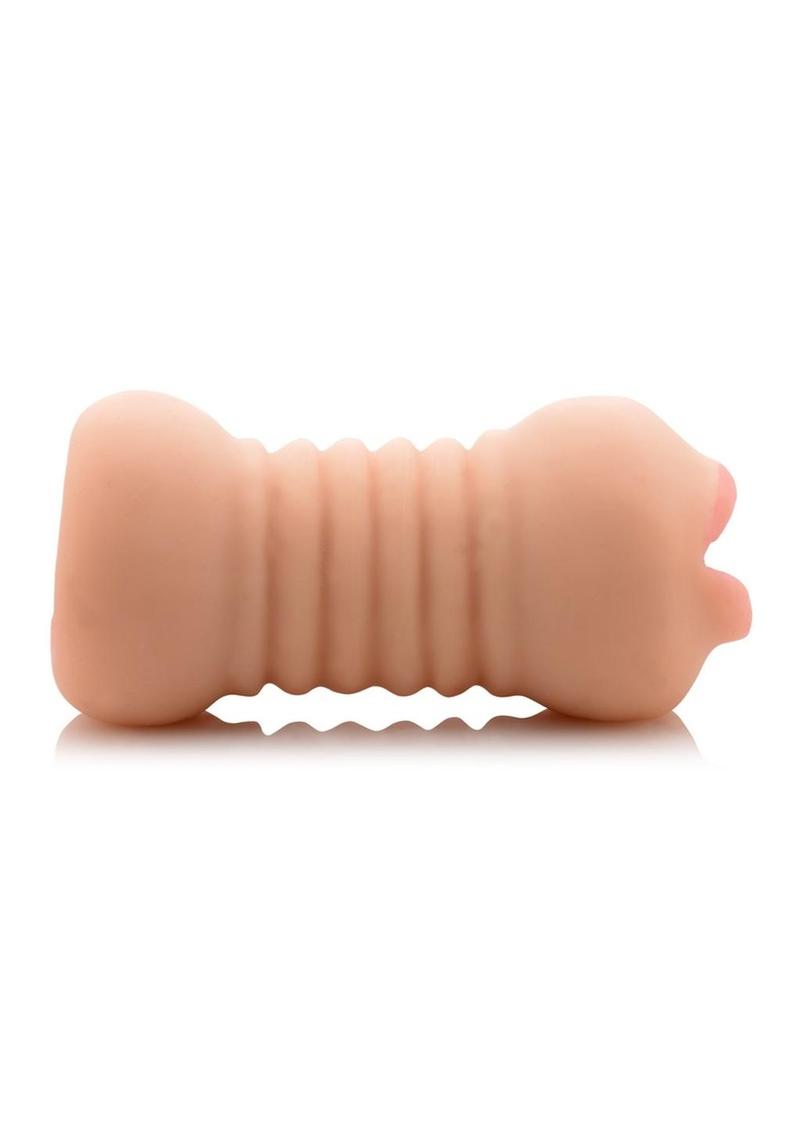 Which is better: a blowjob or anal sex? If that question is too hard to answer, then this stroker is for you! Jesse Jane is here to reclaim her throne. The bubby and busty blonde is back and ready for your cock! This All-American bombshell is one of the biggest porn stars of all time, known for her award-winning sex scenes and mainstream appearances. This realistic masturbation sleeve was molded directly from her mouth and asshole so that you can have your way with her whenever you want. The lifelike material is stretchy to fit all sizes and feels just like the real thing! Her ribbed love tunnels will provide extra stimulation as you thrust in and out and the textured exterior allows you to maintain a firm grip. An open-ended design makes it easy to clean after use. Care instructions included.