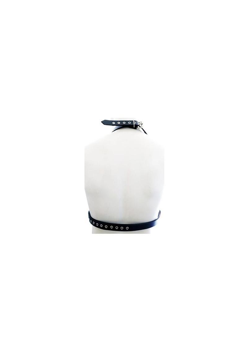 xLeather female chest harness made of high quality leather. Adjustable buckle closure and finished off with flat riveted studs along the straps.