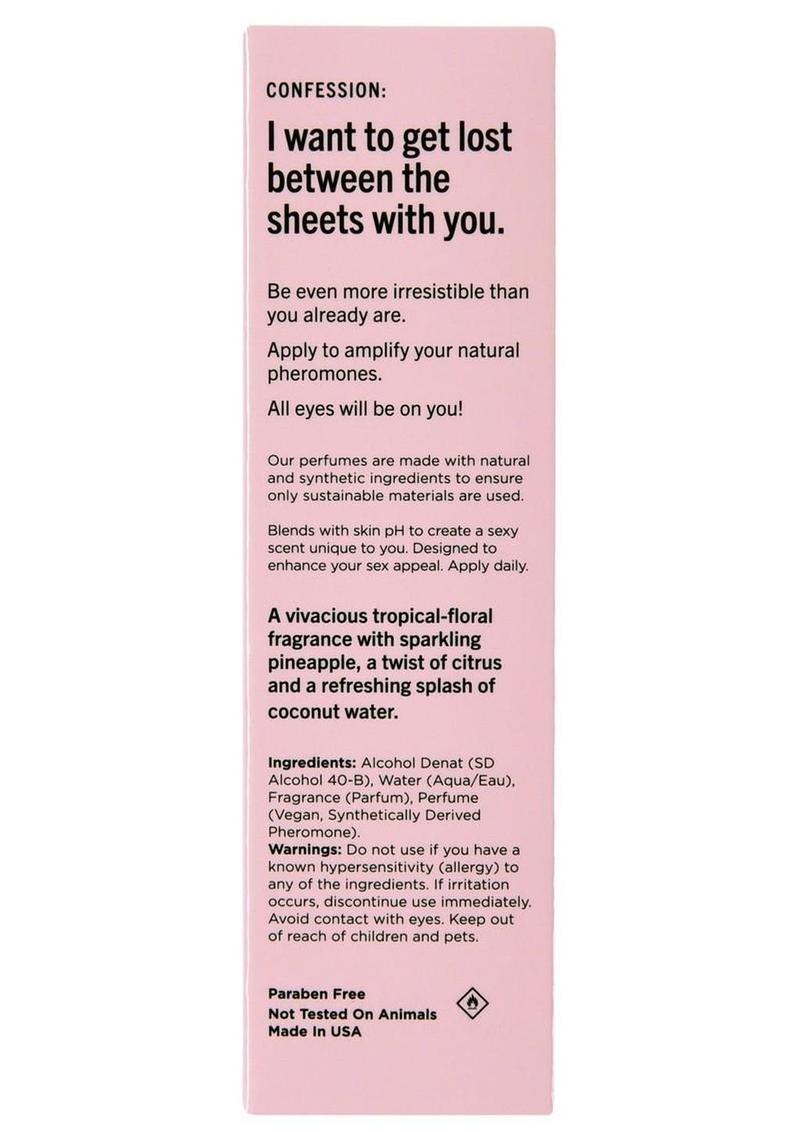Confession: I want to get lost between the sheets with you. A vivacious tropical-floral fragrance with sparkling pineapple, a twist of citrus, and a refreshing splash of coconut water.
