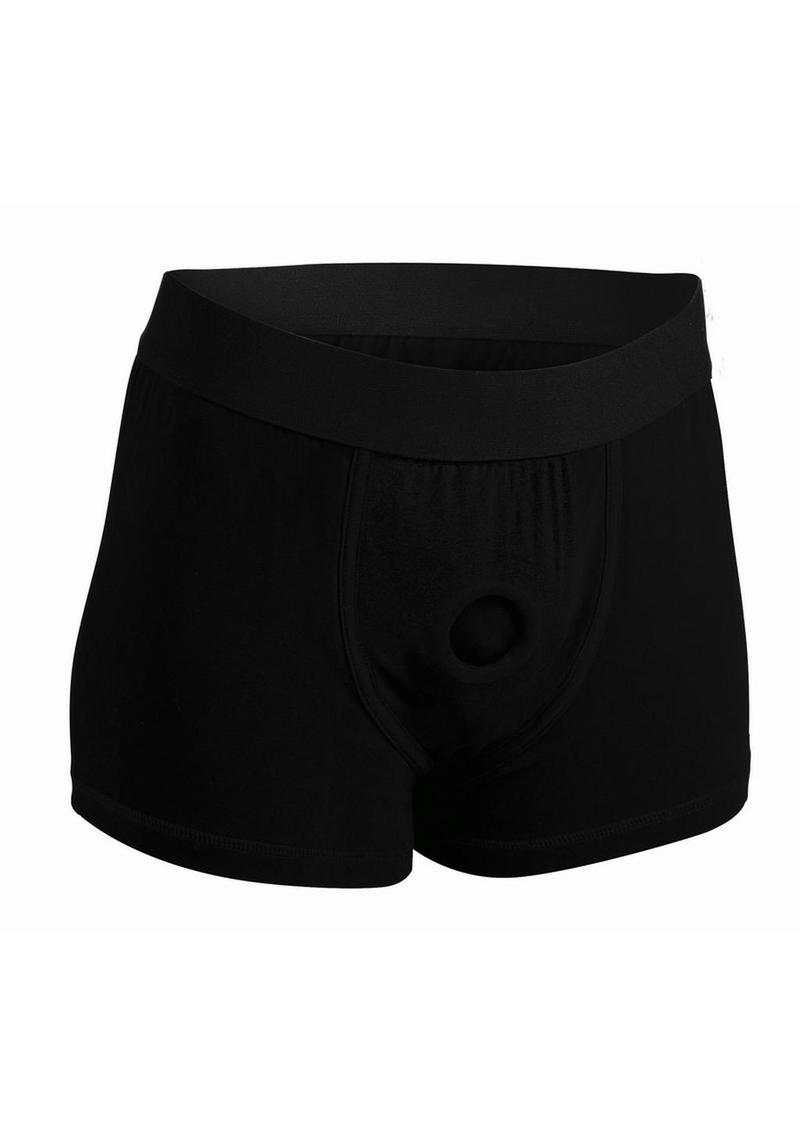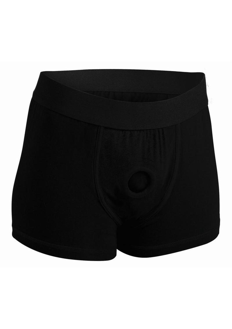xCombine the comfort of boxer-briefs with the functionality of a built-in strapon harness for ultimate versatility! This breathable, cotton and spandex blend underwear is snug fitting with room to move, stretch and play! This Active Style Harness is particular good if you want to be able to pop your strapon dildo into place without having to change clothes, strip down, or adjust lots of harness straps. Just pop the dildo in and you're ready to go! The underwear has a thick, supportive elastic band that helps carry the weight of some heavier dongs, and a stretchable O-ring in the front that fits and adjusts to fit most dildos. After you're done satisfying you're partner, your boxer-brief pair is easily washed on a 'cool' setting in the washing machine!