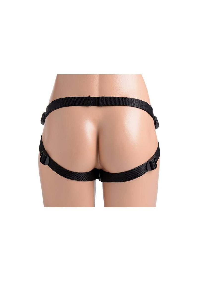 xPerfect for pegging or vaginal sex, this strap-on set has everything you need for a comfortable and passionate penetration! Equipped with a sexy, adjustable harness and a silky, non-threatening dildo, you and your partner will be able to delve into new pleasure territory. The harness accommodates many sizes, wrapping seductively around the butt and thighs. A small pocket sits within the inner panel for adding a vibrating bullet if you choose. The dildo is curved for prostate or G-spot stimulation, with a tapered shaft that gradually increases in diameter. This, coupled with the smooth material, will allow for an easy insertion at your own pace. The dong can also be used on its own, with a suction cup base that is perfect for mounting to hard surfaces. Made of silicone, it is non-porous and phthalate-free. Sterilize with mild soap and warm water, but do not use with silicone lubricants.