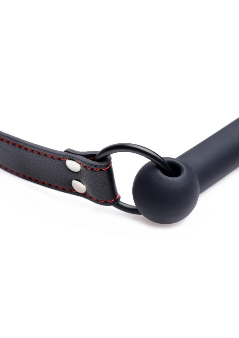 xStrap your pet into this attractive and comfortable bit gag to subdue them during your play sessions. With a classic design and bold red stitching against the leather-like material, the sheer appearance of this accessory will get you both excited for whats to come. The adjustable strap easily secures where the head meets the neck. The high grade silicone is durable, as well as non-porous and phthalate-free for a body-safe experience. Enjoy every muffled moan from that dripping wet mouth when your plaything wears this beautiful bit gag!