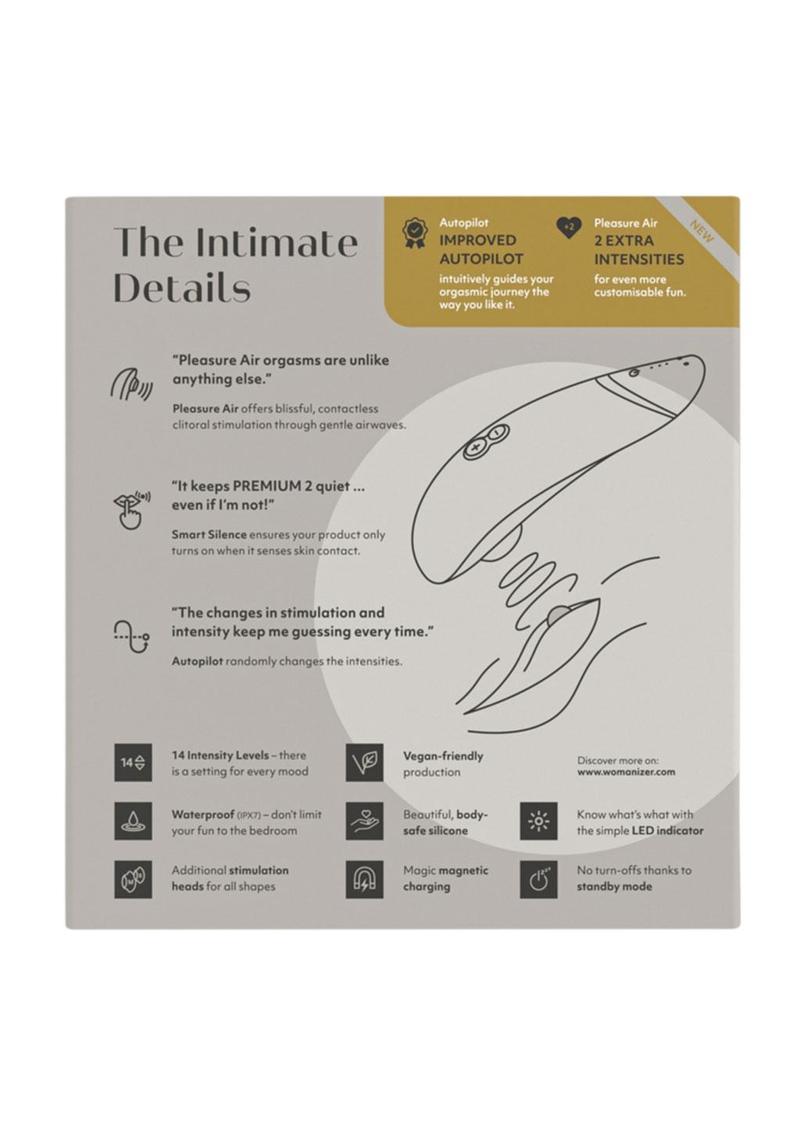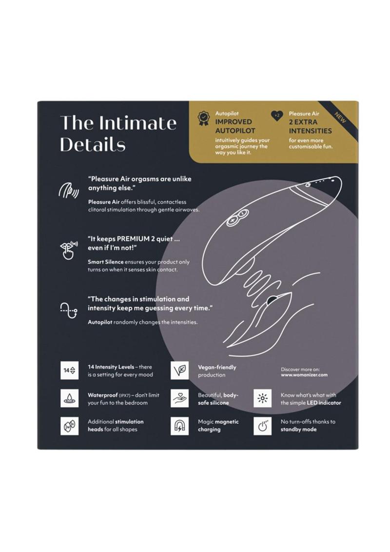 xPREMIUM 2 is Womanizer's most luxurious toy yet, now with 14 intensity levels, discreet and innovative Smart Silence and an improved Autopilot feature for an indulgent, guided experience.