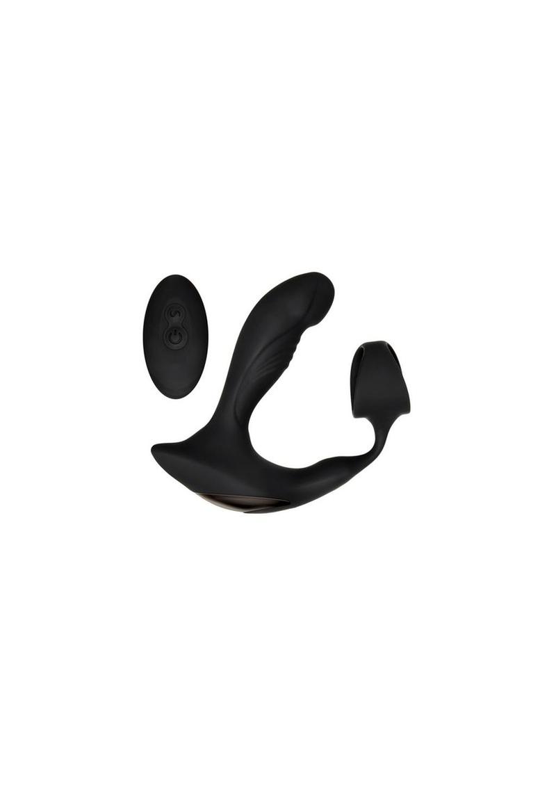 There's nothing quite as erotic as the feeling of simultaneous prostate and penis stimulation, and this toy delivers that extraordinary combination with powerful vibrations and heat! The flexible silicone shaft is designed to arch toward your prostate with a heated tip that massages the P-spot in a tantalizing way, while the textured penis ring works its magic with its own vibrations. Use the remote control to enjoy hands-free play or partner play, even under water as the entire toy is fully submersible. Clean with Zero Tolerance Cleaner and a hot water rinse.